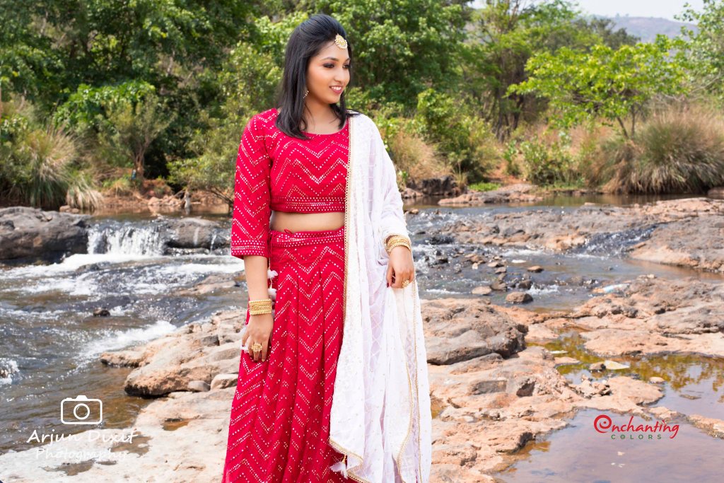 To have the right background in the pictures, it’s important to pick the right location. We selected “The Farmstead resorts” (https://thefarmstead.in/ ), located on Lavasa road near Pune – a nature filled, scenic backdrop for the pictures. Farmstead had the perfect scenery including streams, hills, trees, and a rustic India look.